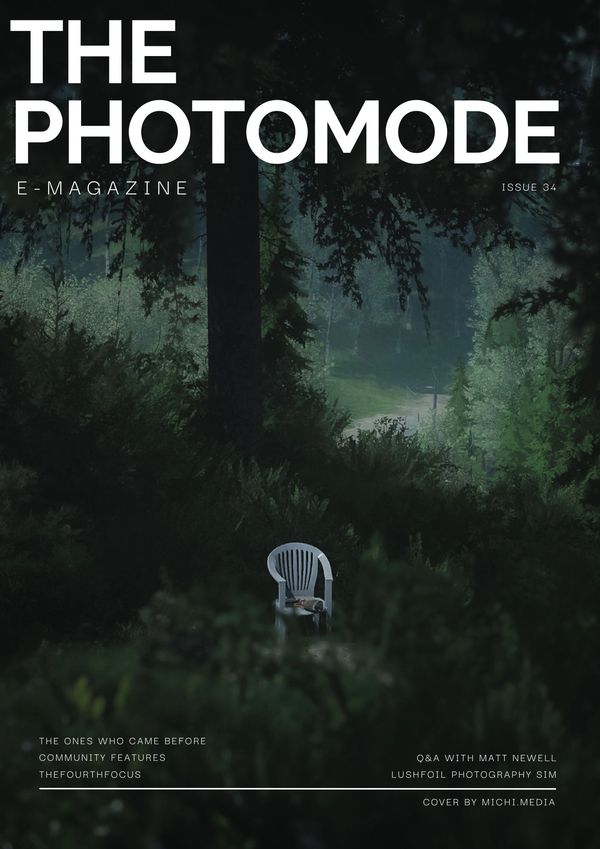 Issue 34 is packed with virtual photography from our talented community! We catch up with Matt Newell about his work on Lushfoil Photography Sim. A unique game where exploration and photography are your main missions. TheFourthFocus give us his review of the game and we get to know virtual photographer reddeadgem. Enjoy!